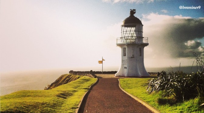 Driving all the way up St. Highway 1 to the very end we reached our destination, Cape Reinga. This is the northernmost point of the North Island, thus the northernmost point of New Zealand. Cape Reinga is the place where the Tasman Sea meets and collides with the Pacific Ocean. Describing these two forces of water come together is near impossible! One one side the water was dark – on the other it was light- and they just met perfectly in the middle forming tidal currents out in the ocean.
